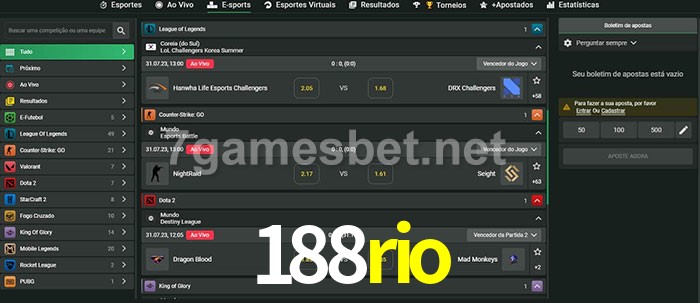 O 188rio oferece uma grande seleção de opções de apostas em e-sports com probabilidades competitivas